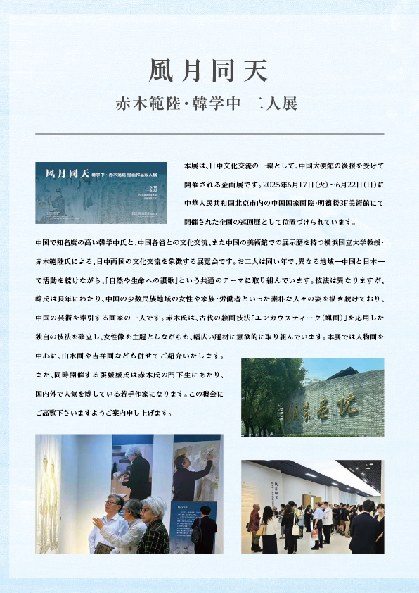 2025年6月17日(火)~6月22日(日)に中華人民共和国北京市内の中国国家画院・明德楼3F美術館にて開催された企画の巡回展として位置づけられています。